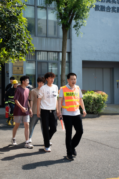 为使培训更贴近实战,活动精心组织了模拟火场疏散逃生演练。随着警报声响起,参训学生在工作人员和引导员的指挥下,按照预定的疏散路线,弯腰低姿、用湿毛巾捂住口鼻(或模拟动作),快速、有序地从模拟充满“浓烟”(通常使用安全烟雾模拟)的场景中撤离至安全集结区。整个过程紧张有序,有效检验了学生们在紧急情况下的应变能力和对疏散程序的熟悉程度。